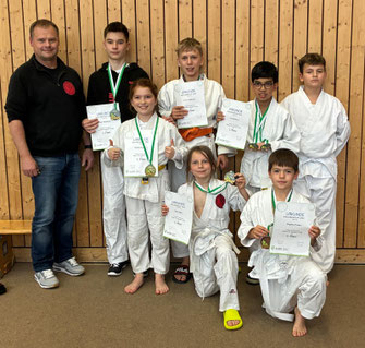 Gute Kämpfe und engagierte Leistungen wurden belohnt. Am Ende gab es viermal Gold und dreimal Silber für unsere sieben Starter. (Einige Sportler hatten bereits im Vorhinein keine Gegner und starteten daher nicht)